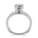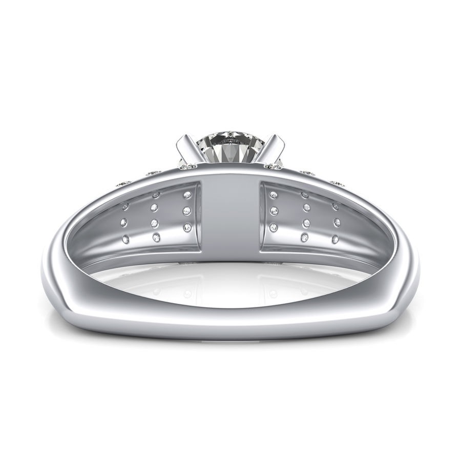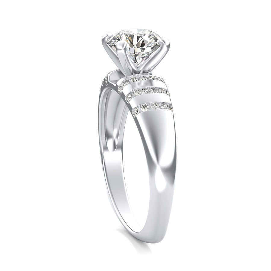 DetailsFloating diamond engagement ring with triple splash of diamonds. This ring has a 1.00 ct total diamond weight. We have a 100% natural diamond guarantee and the diamonds on this ring are certified at D, VVS1. The center stone shape is “Round” and the diamond has 0.65 ct. The side stones shape are Round and have 0.35 ct total diamond weight. This ring is hand crafted in the USA in 14k White Gold. For more information, call us today.