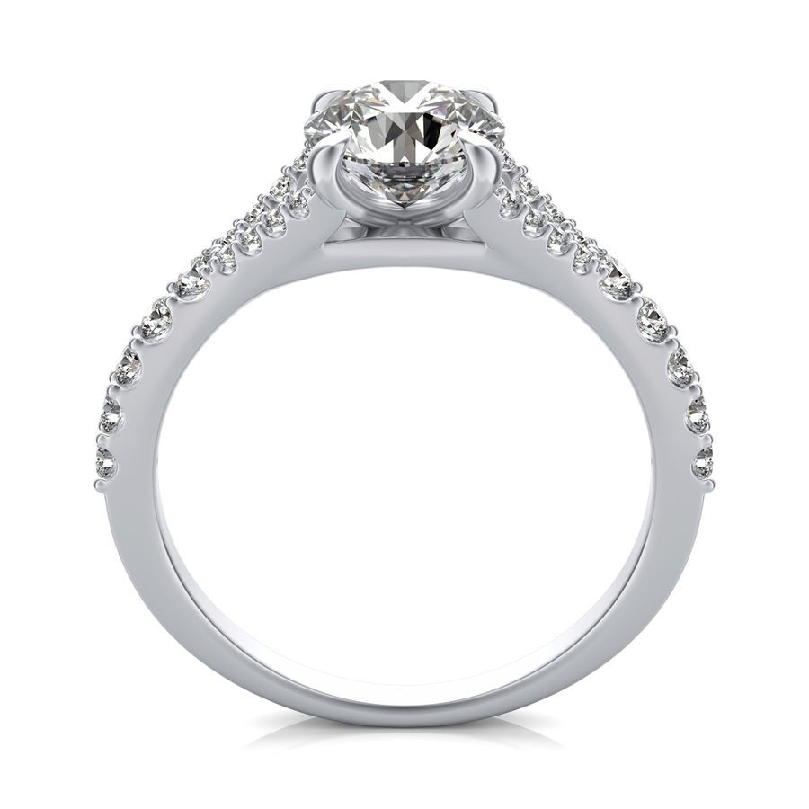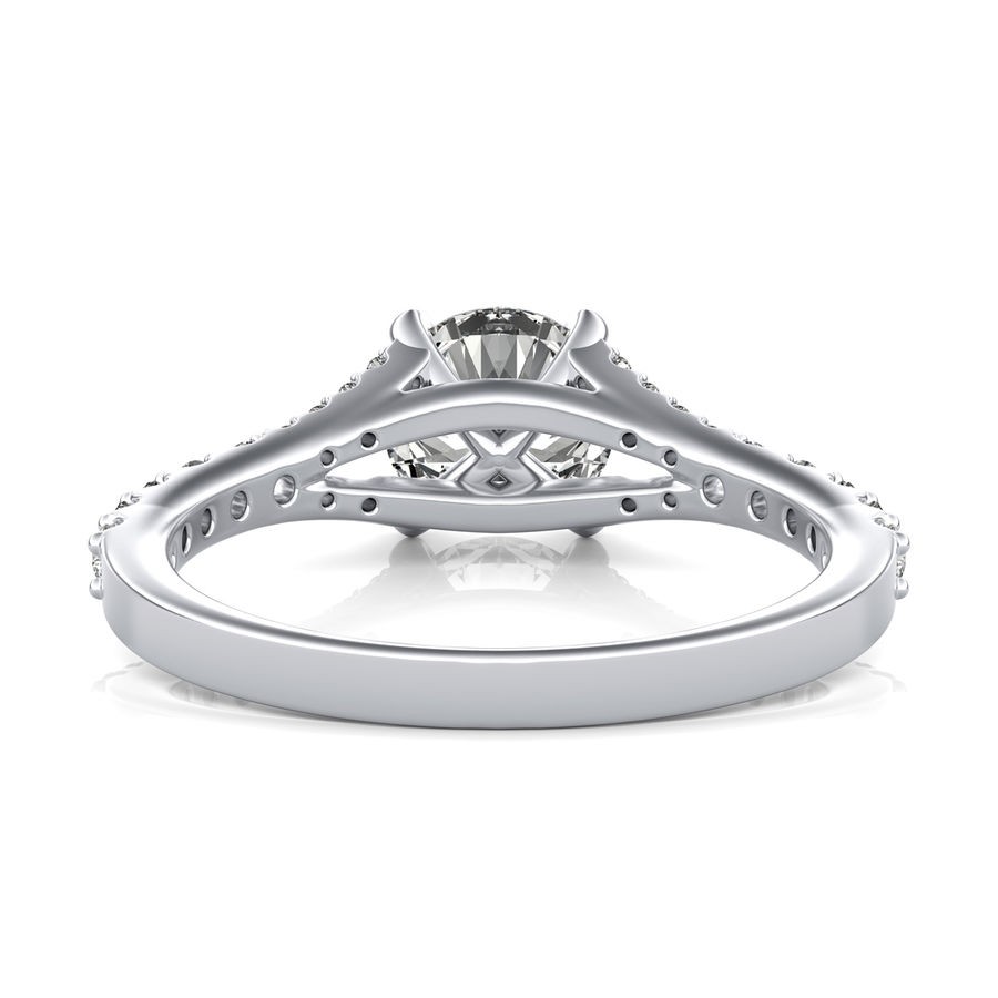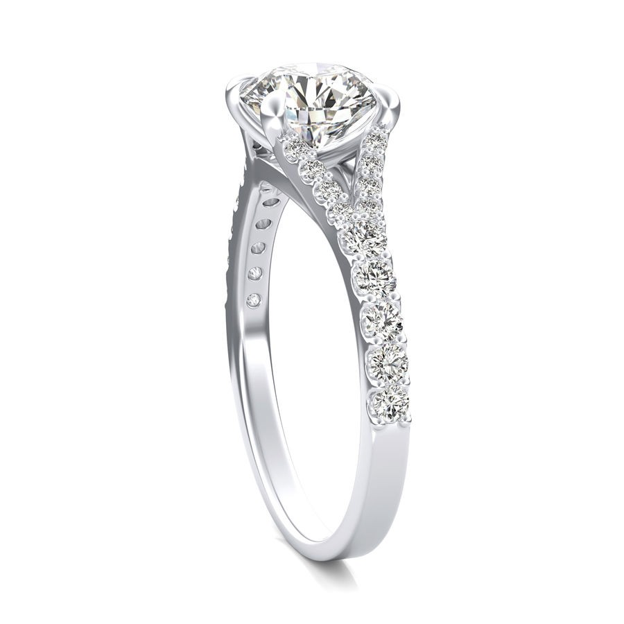 DetailsSplit shank diamond engagement ring with floating center stone. This ring has a 1.00 ct total diamond weight. We have a 100% natural diamond guarantee and the diamonds on this ring are certified at D, VVS1. The center stone shape is “Round” and the diamond has 0.65 ct. The side stones shape are Round and have 0.35 ct total diamond weight. This ring is hand crafted in the USA in 14k White Gold. For more information, call us today.