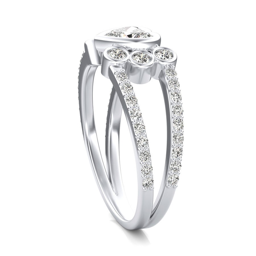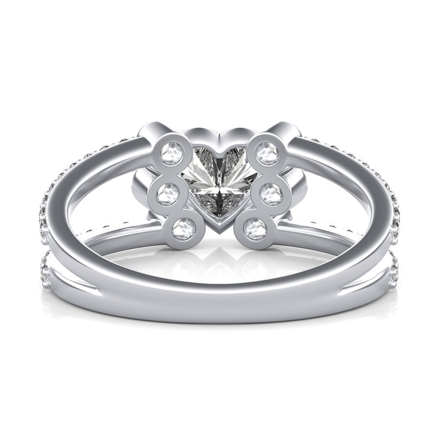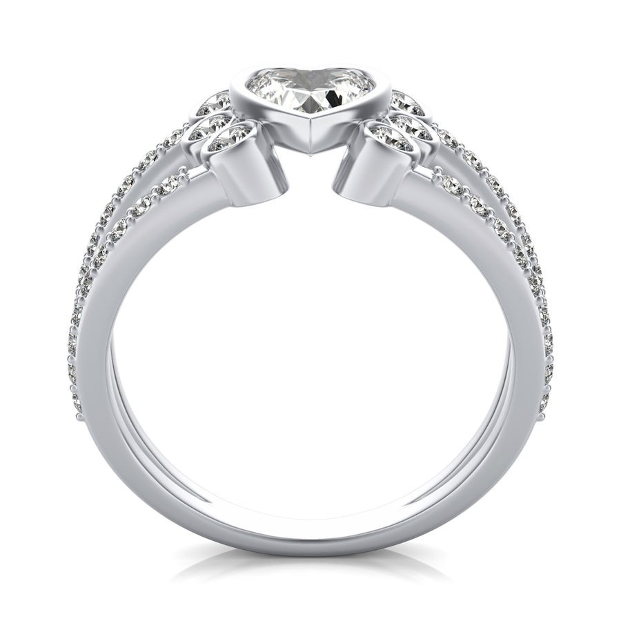 DetailsBezel set diamond engagement ring with heart center stone. This ring has a 1.00 ct total diamond weight. We have a 100% natural diamond guarantee and the diamonds on this ring are certified at D, VVS1. The center stone shape is “Round” and the diamond has 0.65 ct. The side stones shape are Round and have 0.35 ct total diamond weight. This ring is hand crafted in the USA in 14k White Gold. For more information, call us today.
