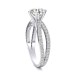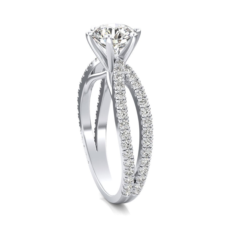 DetailsOpen band engagement ring with french set side stones. This ring has a 1.00 ct total diamond weight. We have a 100% natural diamond guarantee and the diamonds on this ring are certified at D, VVS1. The center stone shape is “Round” and the diamond has 0.65 ct. The side stones shape are Round and have 0.35 ct total diamond weight. This ring is hand crafted in the USA in 14k White Gold. For more information, call us today.